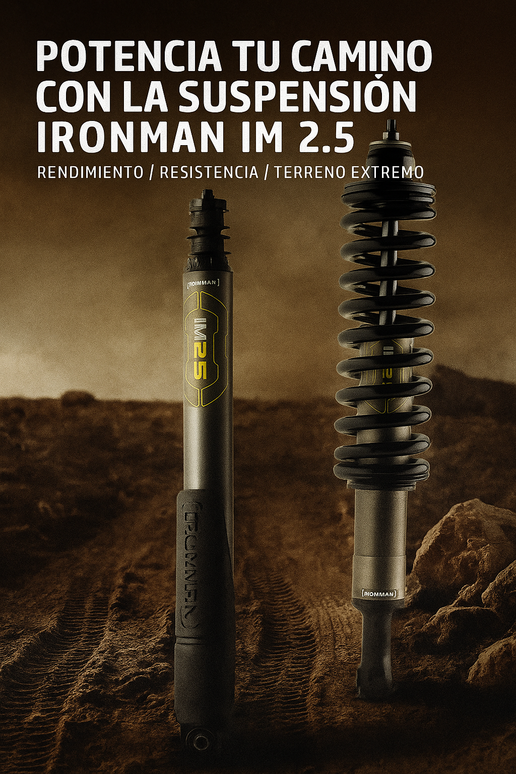 La suspensión Ironman IM2.5 representa una de las soluciones más avanzadas en sistemas de suspensión todoterreno, diseñada para maximizar el rendimiento, la estabilidad y el confort en condiciones exigentes. Esta suspensión, desarrollada con tecnología australiana de alto estándar, integra amortiguadores monotubo de 2.5 pulgadas, lo que permite una capacidad de respuesta y disipación térmica muy superior a la de los sistemas convencionales.